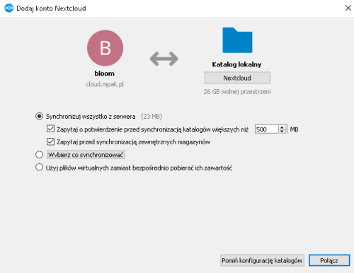• wybieramy najpierw katalog na komputerze, w którym przechowywane będą pliki z Nextcloud